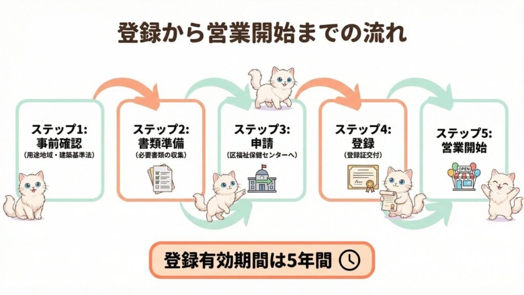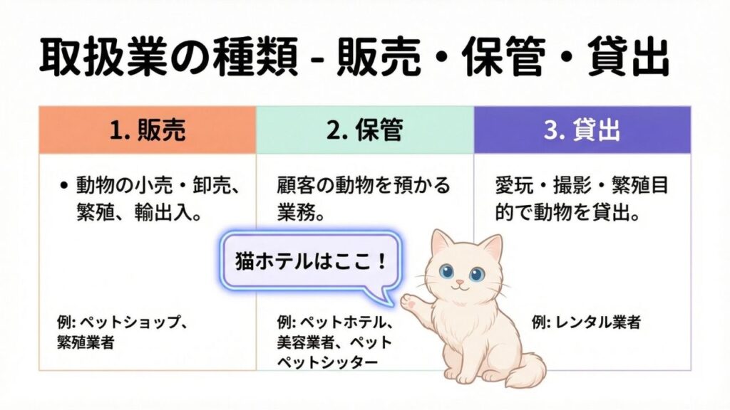 これから開業する方向けに、動物取扱業の登録を図解した資料です。複雑な制度を視覚化し、直感的に理解できる構成にしています。キャラクター作成、資料設計、作成までAIをフルに使用しています行っています。